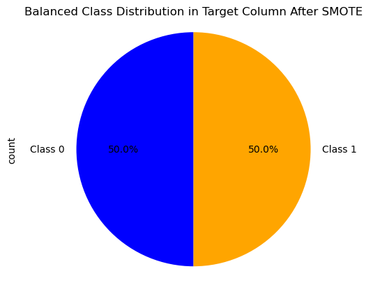 plt.title('Balanced Class Distribution in Target Column After SMOTE')