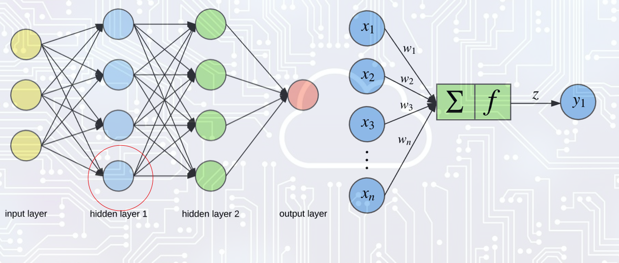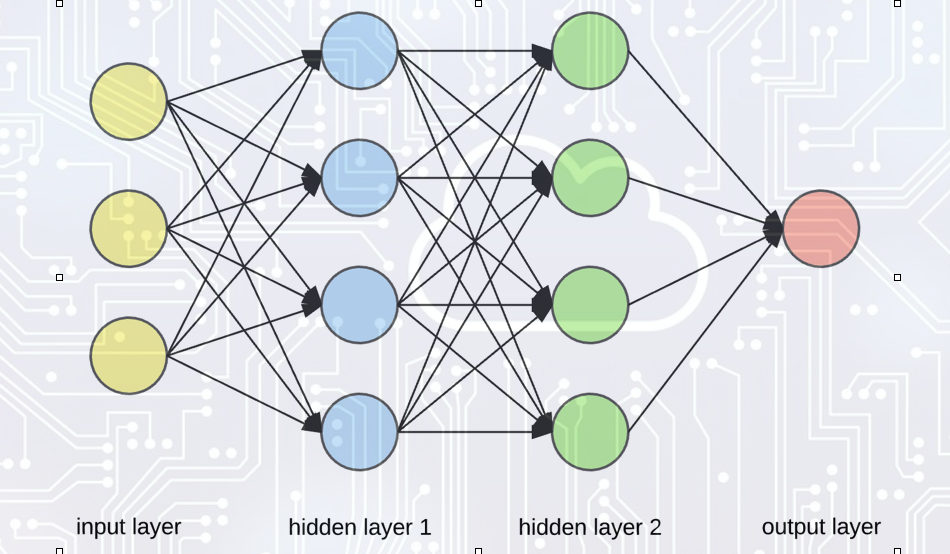 ANNs consists of multiple nodes (the circles) and layers that are all connected and using basic math gives out a result. These are called feed forward networks.